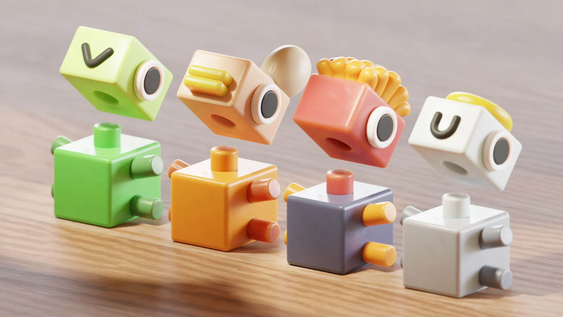 My idea is to create cute, minimalist block toys that resemble some of the characters I created before. And it keeps growing into a collection of 10 models and one full-scale promotion trailer for the project.